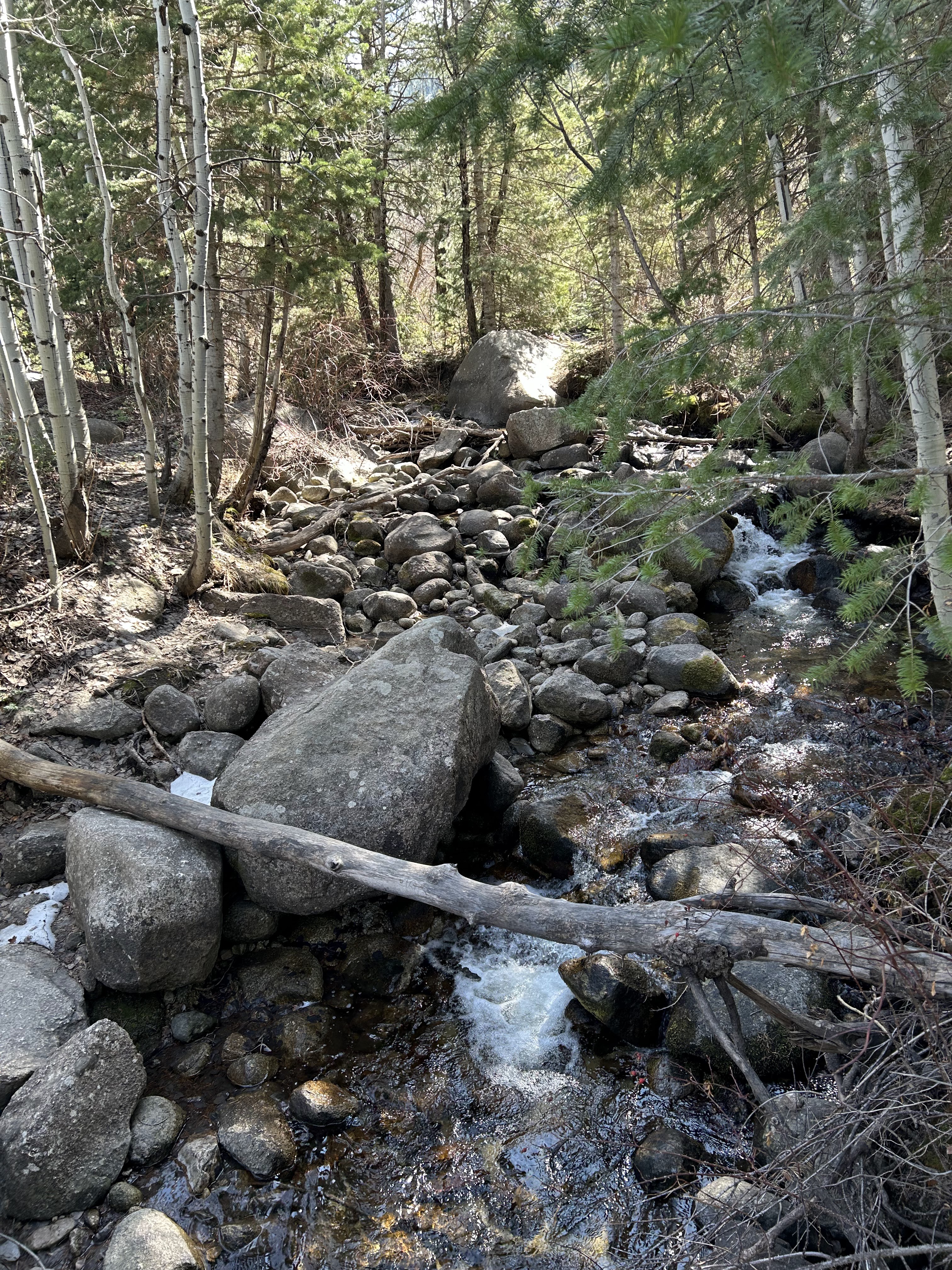 Looking upstream from a footbridge that the trail crosses at #2 on the map.