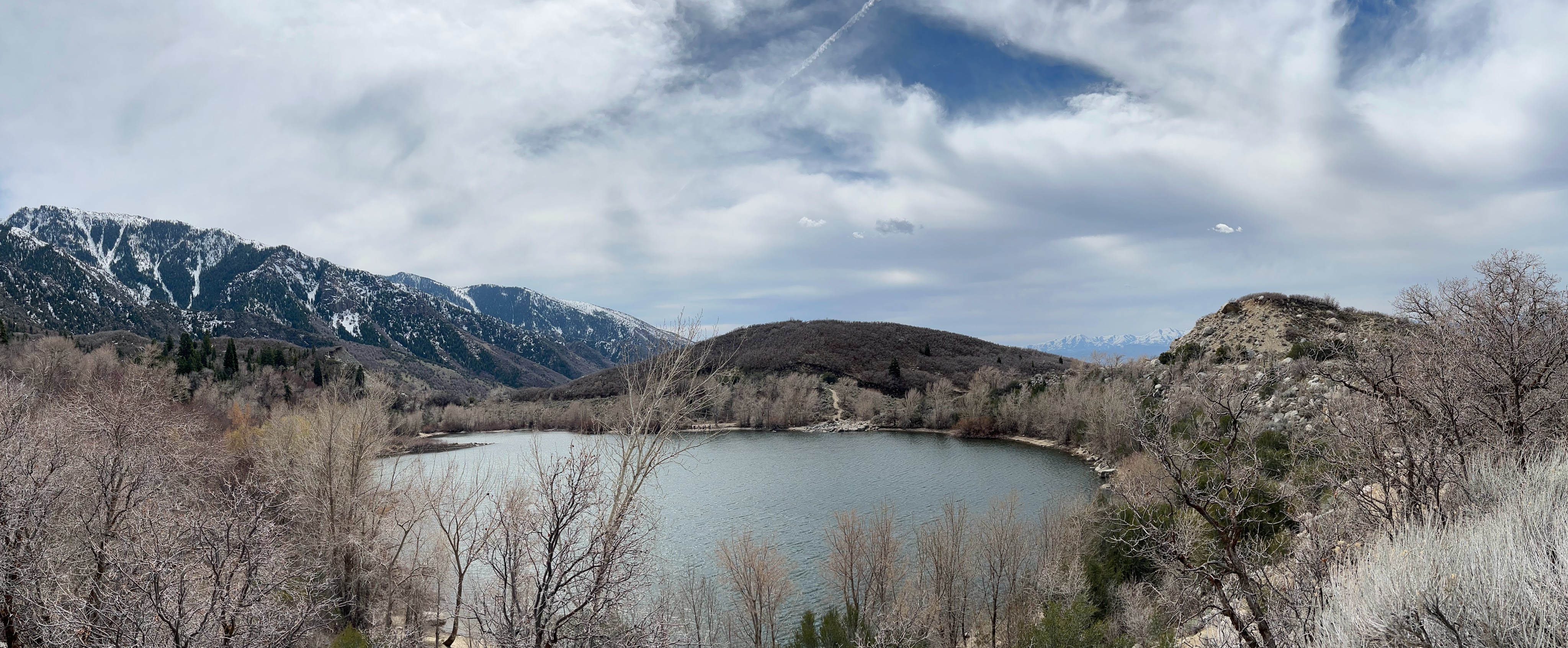 This photo shows the Lower Bell Canyon Reservoir and the Oquirrh Mountains in the distance to the westPanoramic view of the Lower Bell Canyon Reservoir