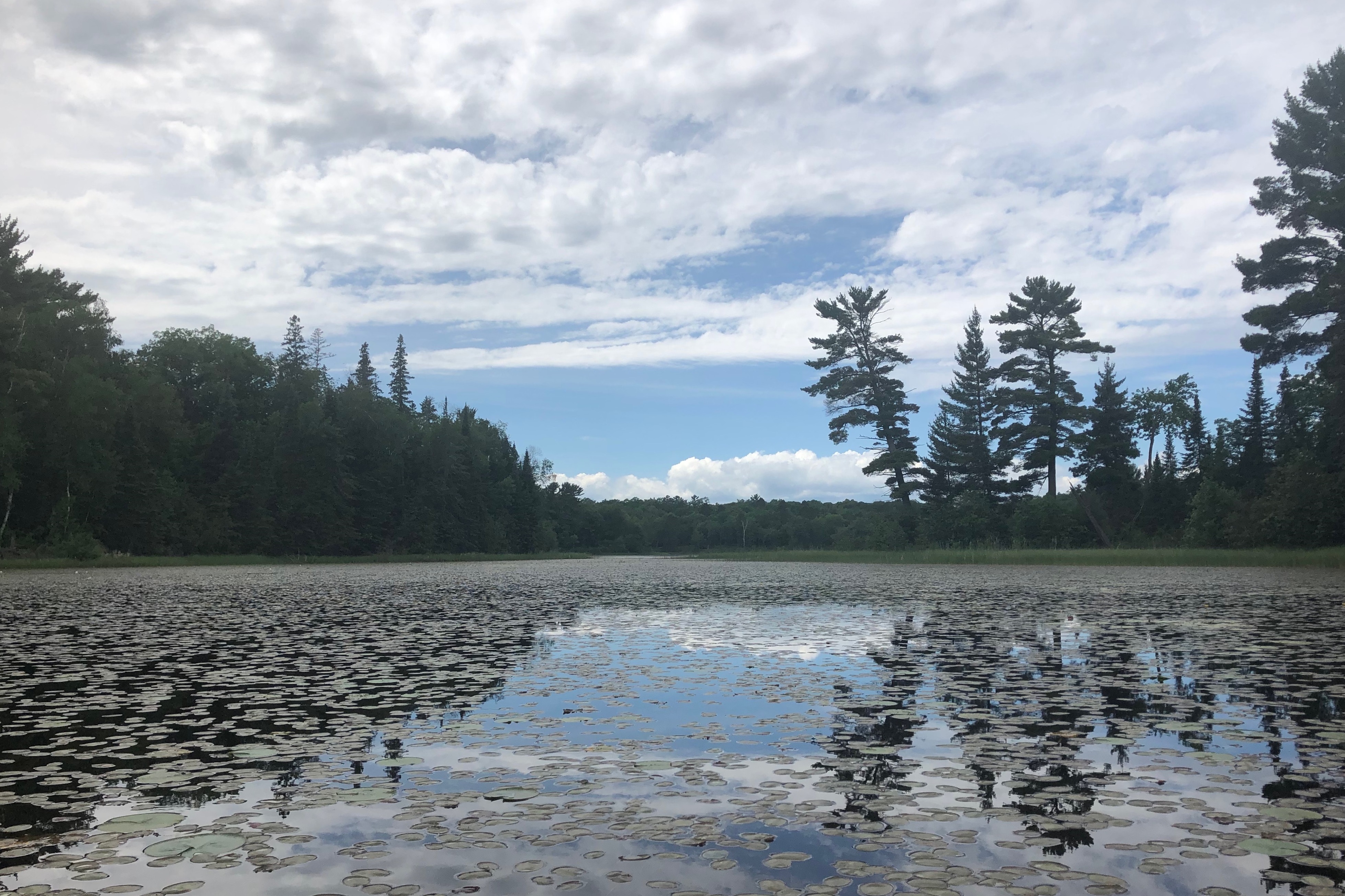 Big Bass Lake is largely undeveloped, and was terrific to explore in kayaks on Sunday. In it areas of open water are connected by shallower channels.