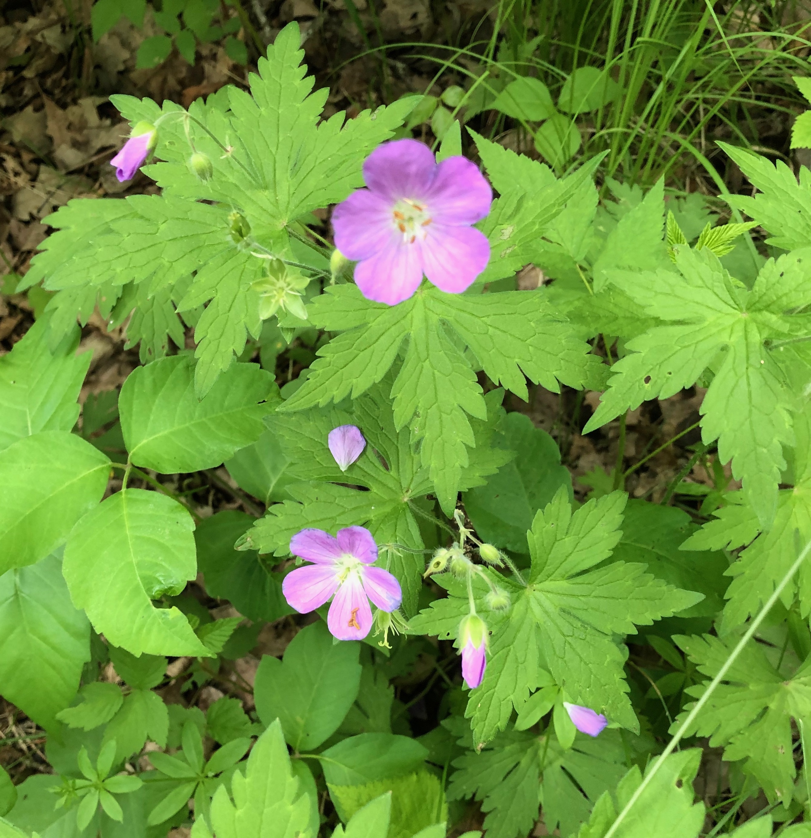 The Wild Geranium is an attractive plant found commonly in shadier areas along the roadside. It blooms for only a short time in June.