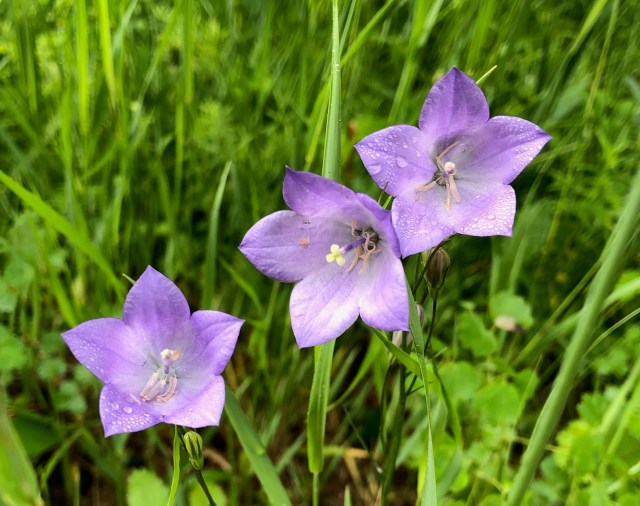 Harebell has a number of alternate names, The “Picture This” app calls it Bluebell Bellflower. We first notice Harebell blooming in mid-June and it has continued since then. The plant appears delicate, but actually is very hardy. It blooms throughout the summer and is able to flourish in rocky soils.