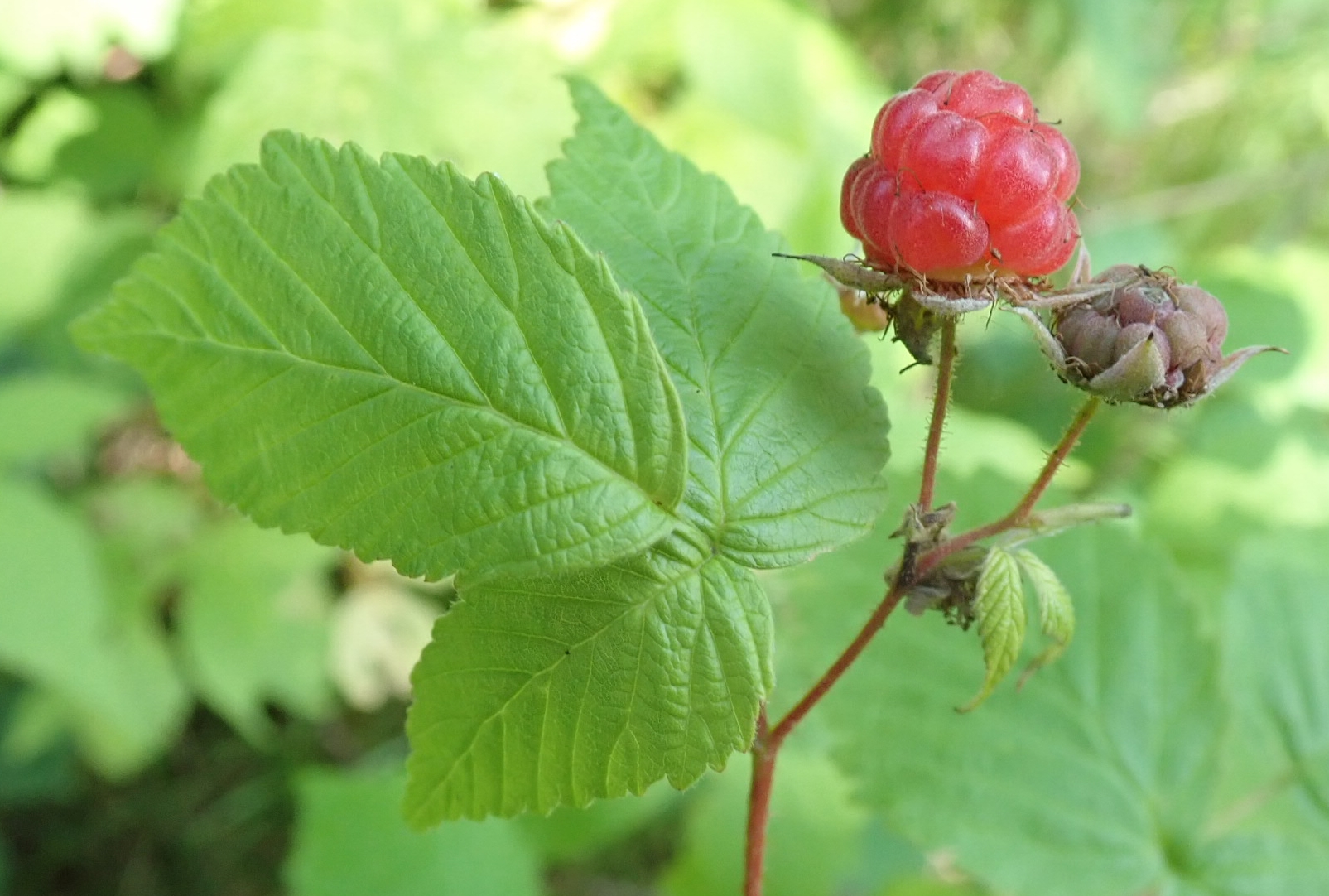 In our area the raspberries are especially noticeable now, because of their eye-catching ripe fruit. They are most commonly found in the dappled shade at the edges of forested areas.