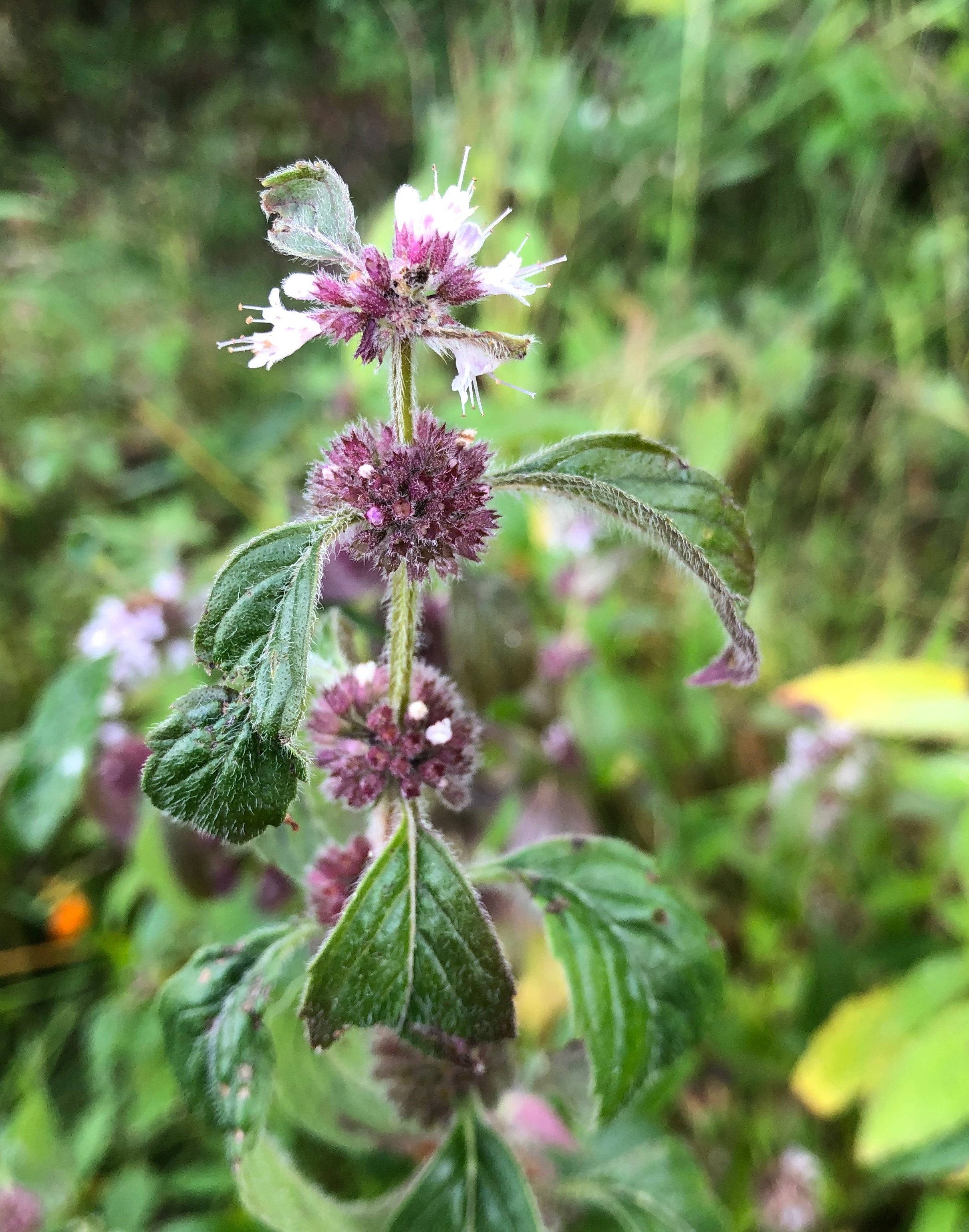 This plant, also called Field Mint or Corn Mint, is the only true mint native to North America. It is edible, a few leaves provides a minty taste to salads. It is also commonly used in herbal teas.