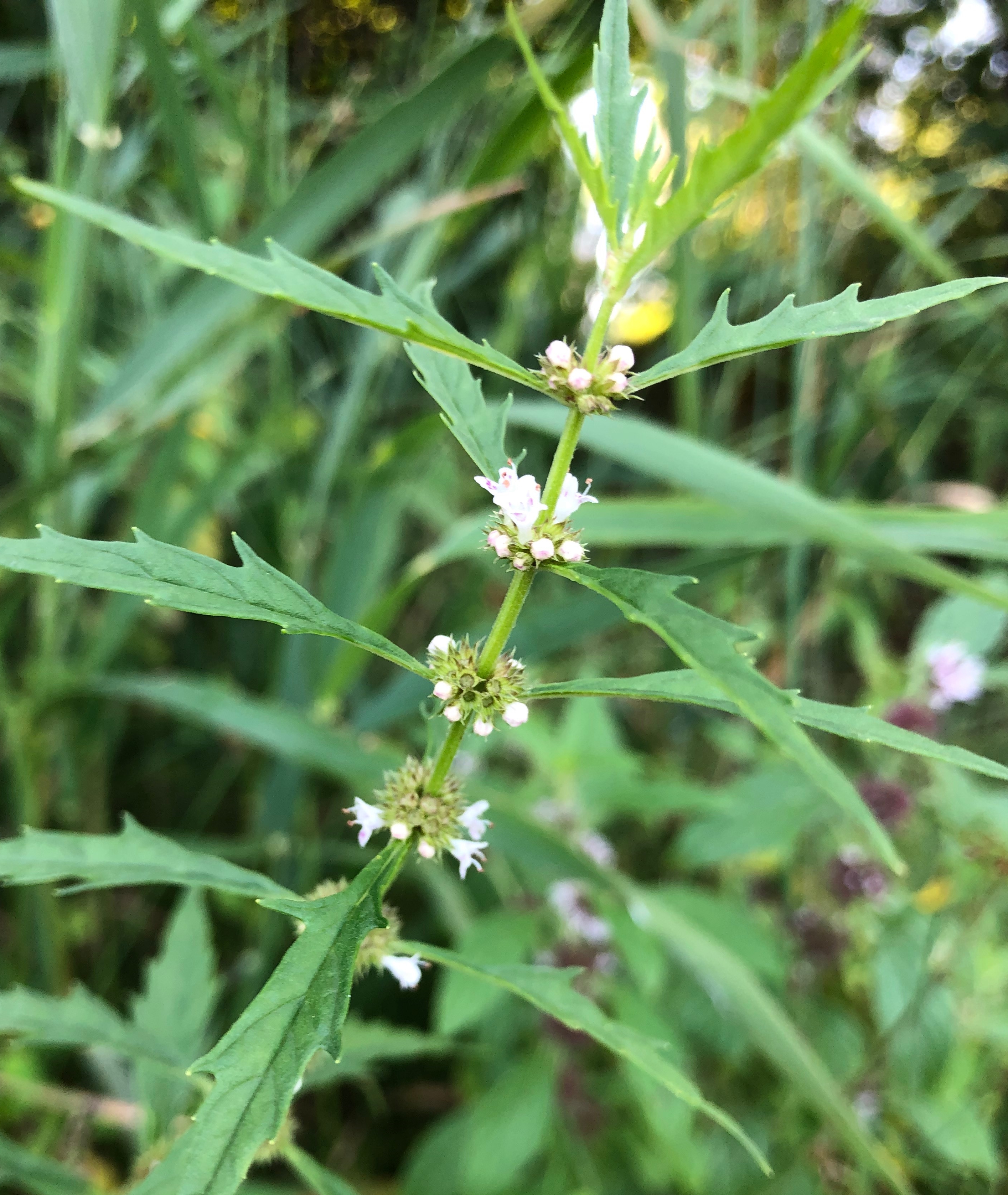 This plant is also in the Mint family (Lamiaceae), however it does not have the characteristic minty scent. A commonly-used alternate name for it is American Bugleweed.