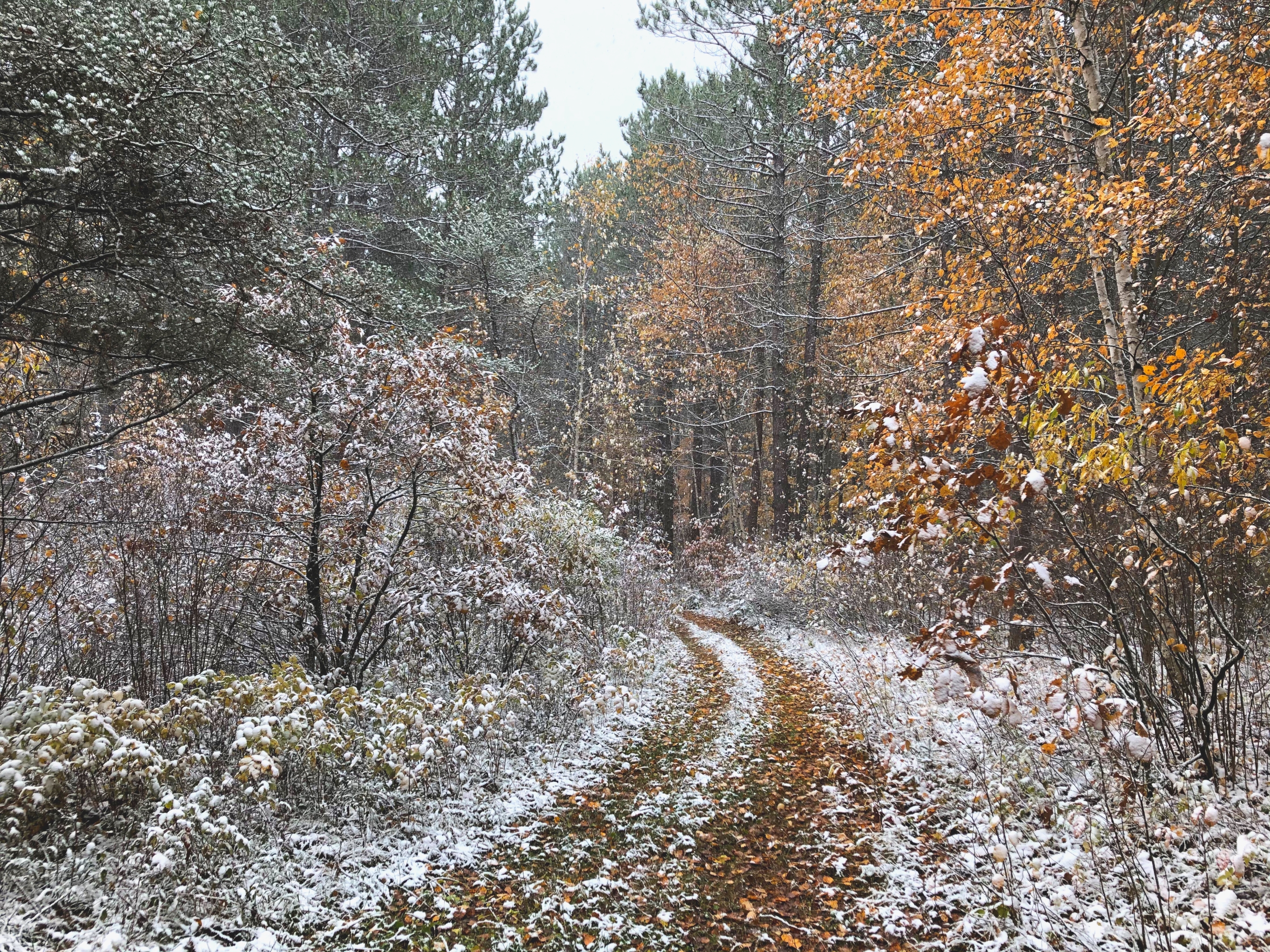 Gentle snow fell in Northwestern Minnesota in early October this year, providing a wintertime preview. Surviving winter temperatures far below freezing is a big challenge for plants and animals. Today’s post focuses on how trees make it through — with some scenic pictures of the recent snow.