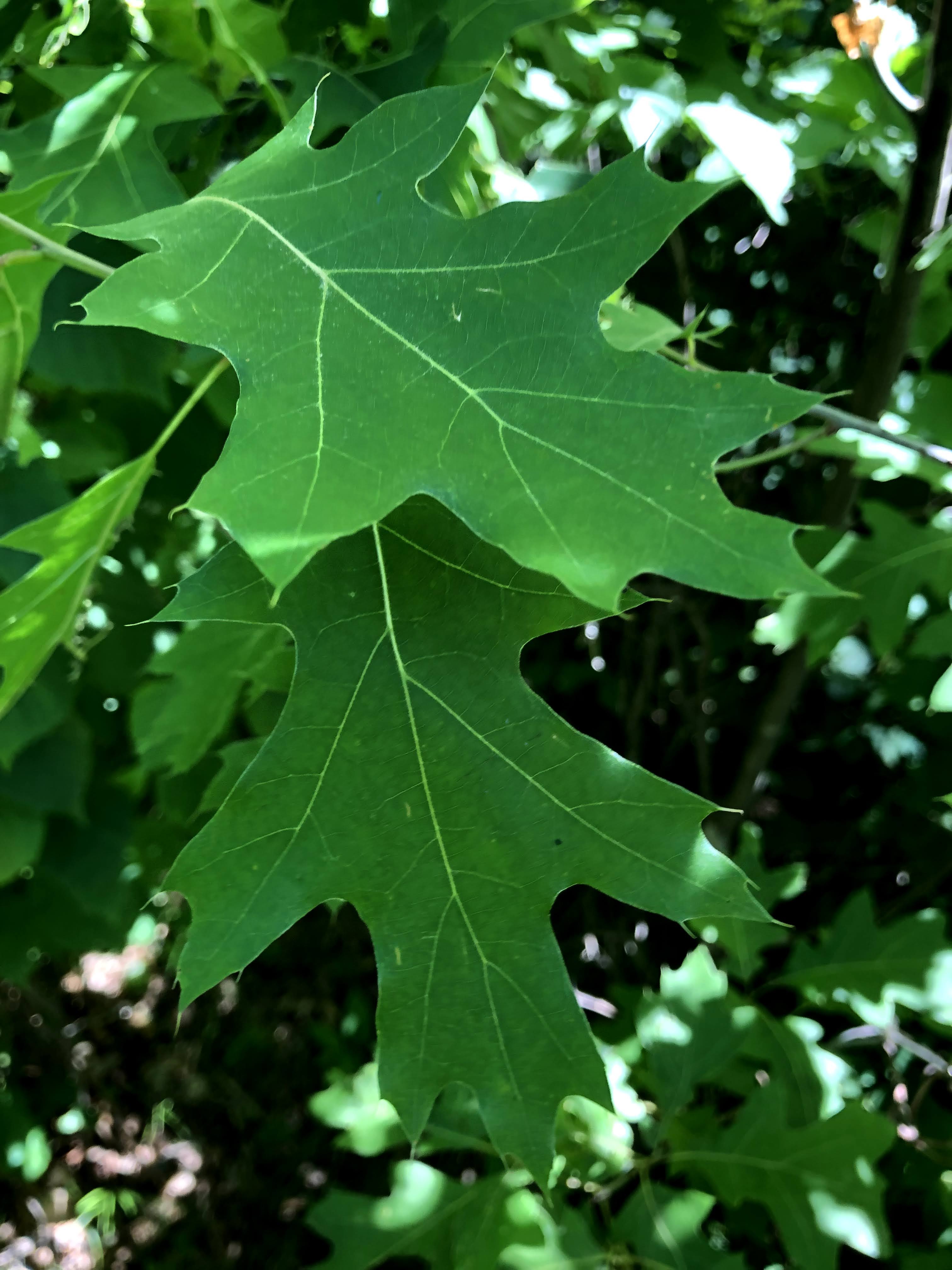 There are two main groups of oak trees, the white oaks and the red oaks. Leaf shape is the easiest way to distinguish between these two groups of oaks. Leaves of white oaks typically have rounded lobes, while red oak leaves have several pointed tips. The Bur Oak is a white oak and the Northern Red Oak and Pin Oak are red oaks.