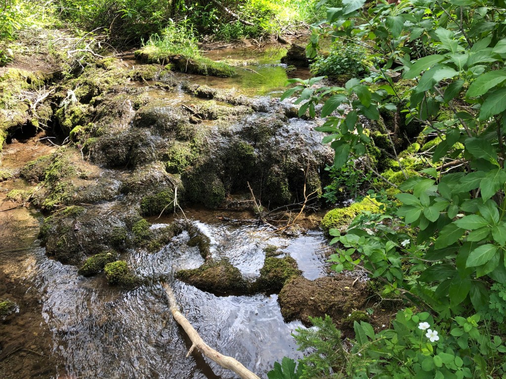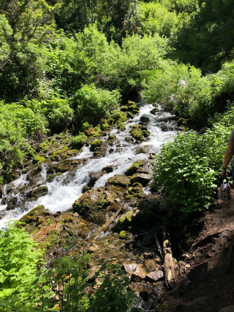 The trail follows Nobletts creek for about 2 miles with a moderate gain in elevation of 275′. The creek cascades down rocks that appear to be mainly limestone. A geologic map provided in the UtahGeology website indicates that this limestone is of Mississippian age, ~350 million years old.