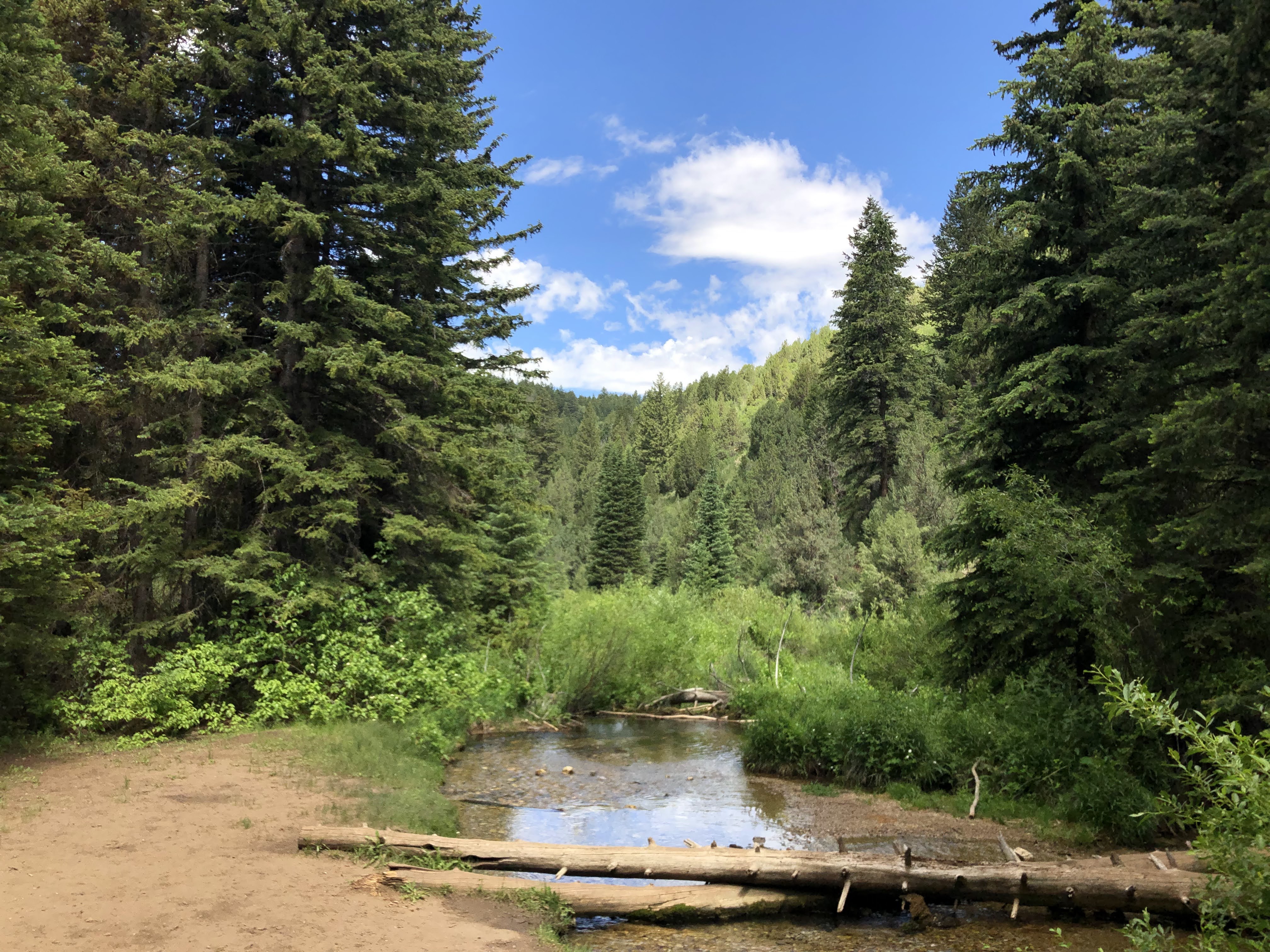 The Uintas Mountains are an east-west trending sub-range of the Rocky Mountains that contain the highest mountain in Utah, Kings Peak (elevation 13,528′). Nobletts is an easy hiking trail on the western flank of the Uintas, its trailhead is about 50 miles west of Salt Lake City.