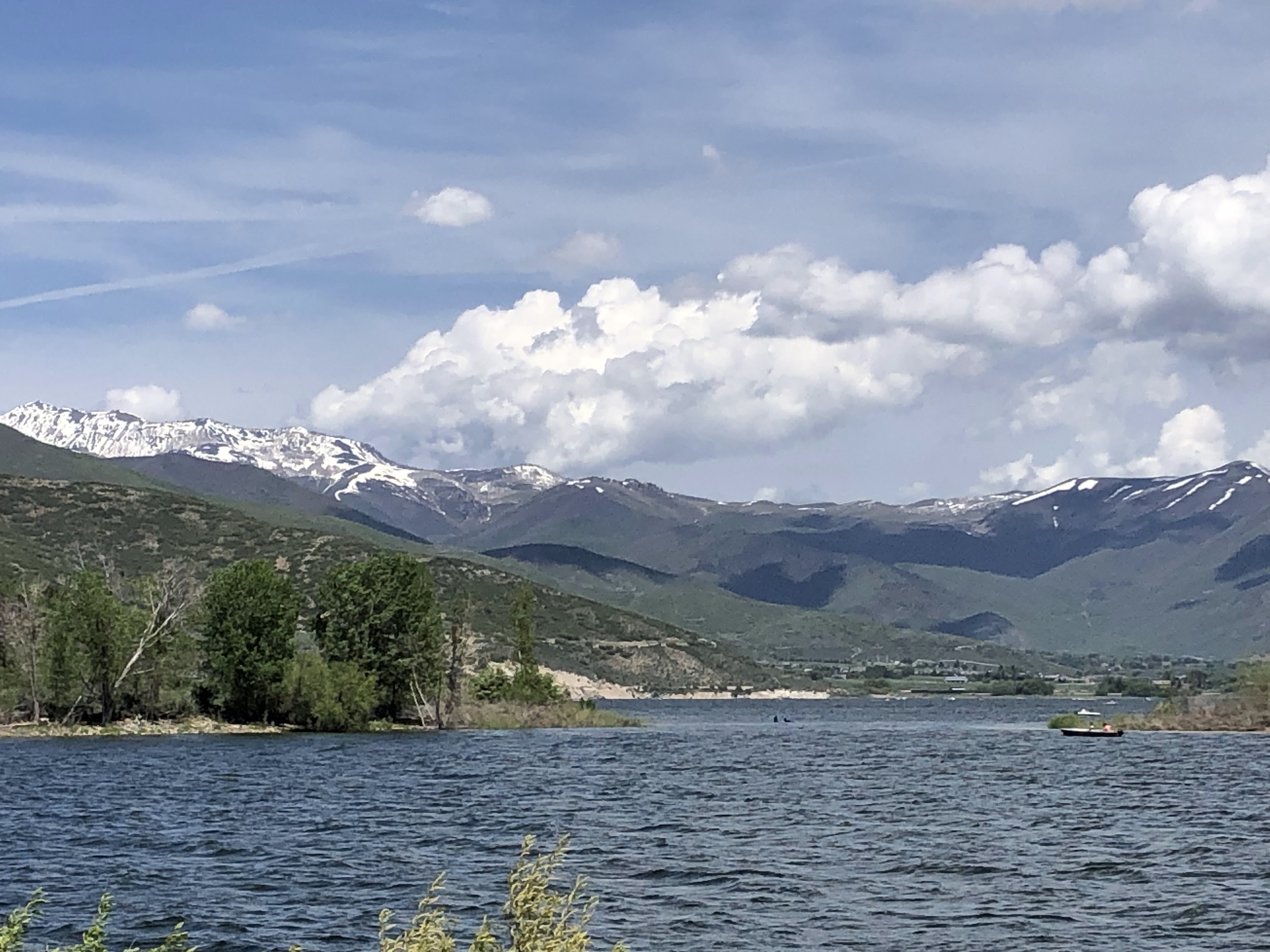 On Memorial Day we brought two kayaks up from Salt Lake City to Deer Creek State Park, near Heber, Utah (appreciating a YouTube video that reminds how to use our J-bar kayak carrier). The water was choppy and chilly, but the views of the still-snowy mountains were awesome.