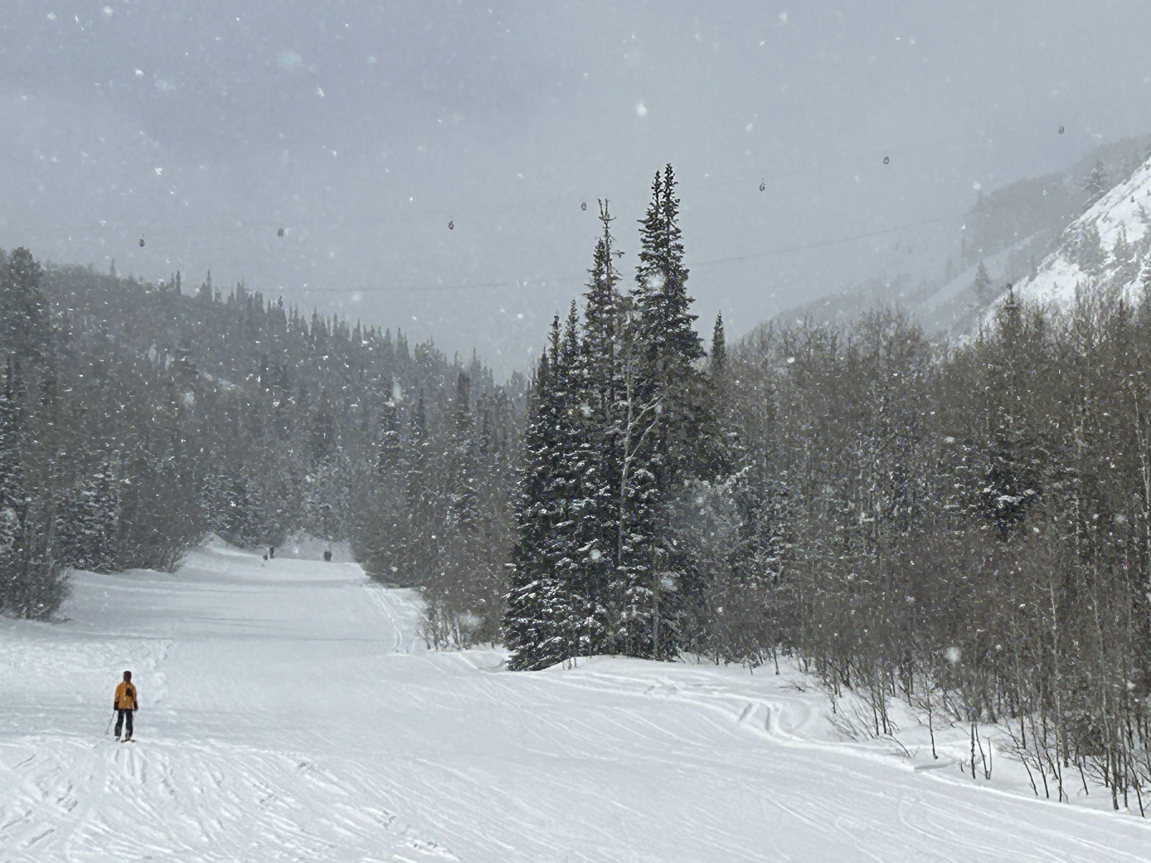 There was fantastic skiing on April 6 and 7 this year at Park City, Utah. A late season storm provided a gentle downfall of powdery snow. This was a welcome change from two days previous, when warm afternoon temperatures had us skiing in slush.