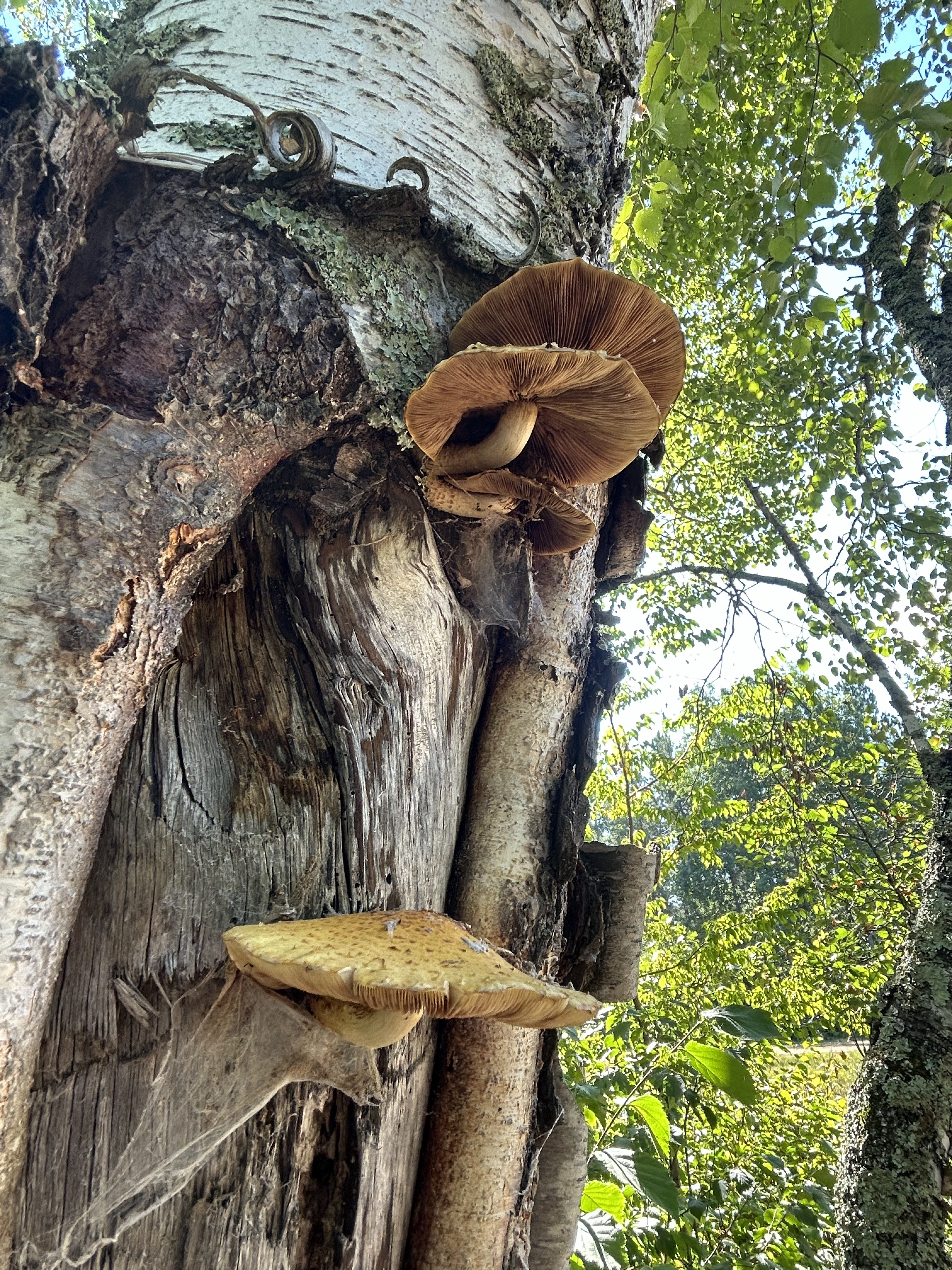 These scaly cap mushrooms were growing out of a scarred area of a birch tree. This is another mushroom that a few people can tolerate eating but more commonly causes severe digestive upset. Like the inky caps, consuming these with alcohol is trouble. They are a favorite food of red squirrels though.