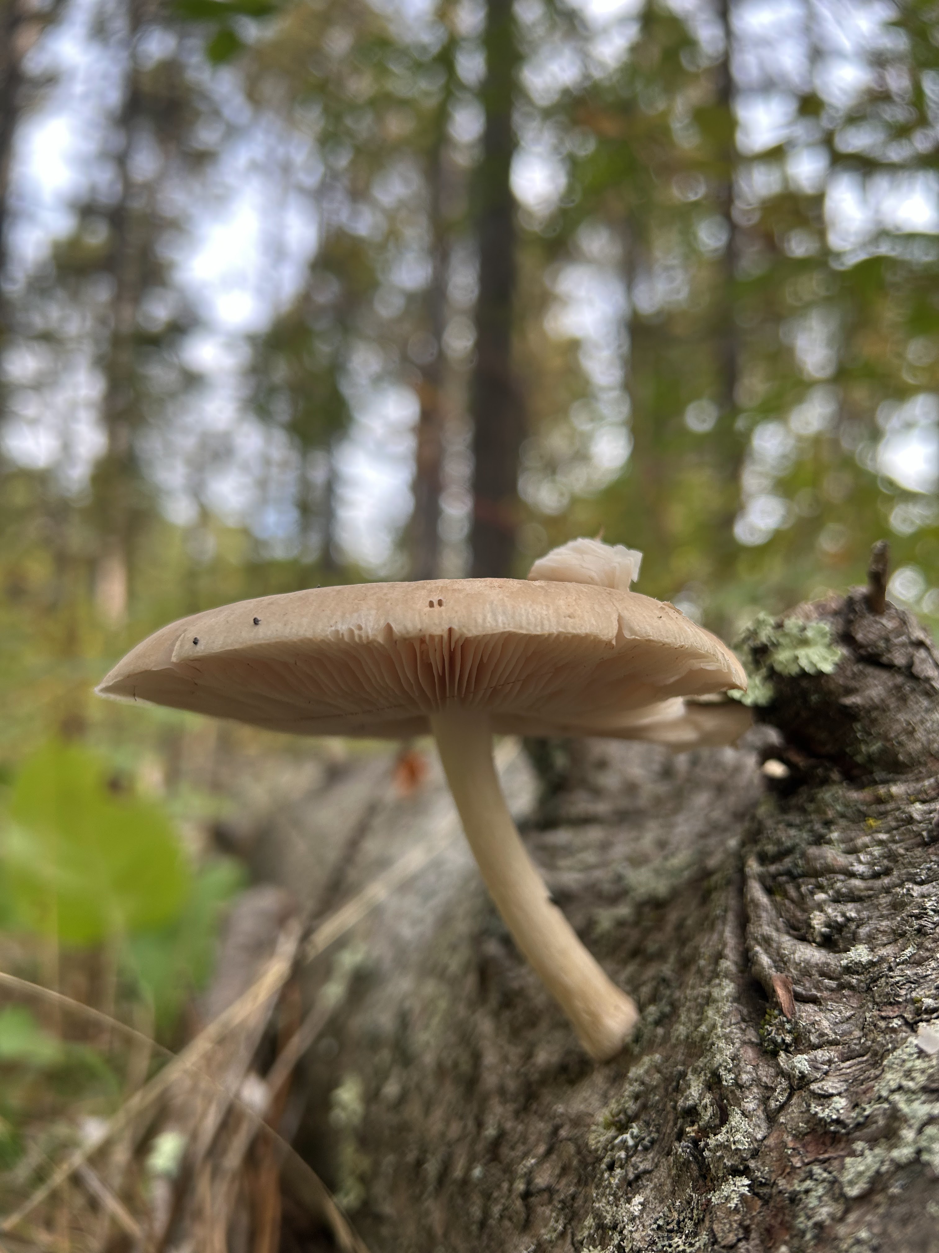 Deer mushrooms are common in Minnesota, usually found growing on stumps or wood chips. I thought it was unusual to find this one growing right out of a downed fir tree. Deer mushrooms are edible, but not particularly tasty. Reportedly they taste somewhat like radish.