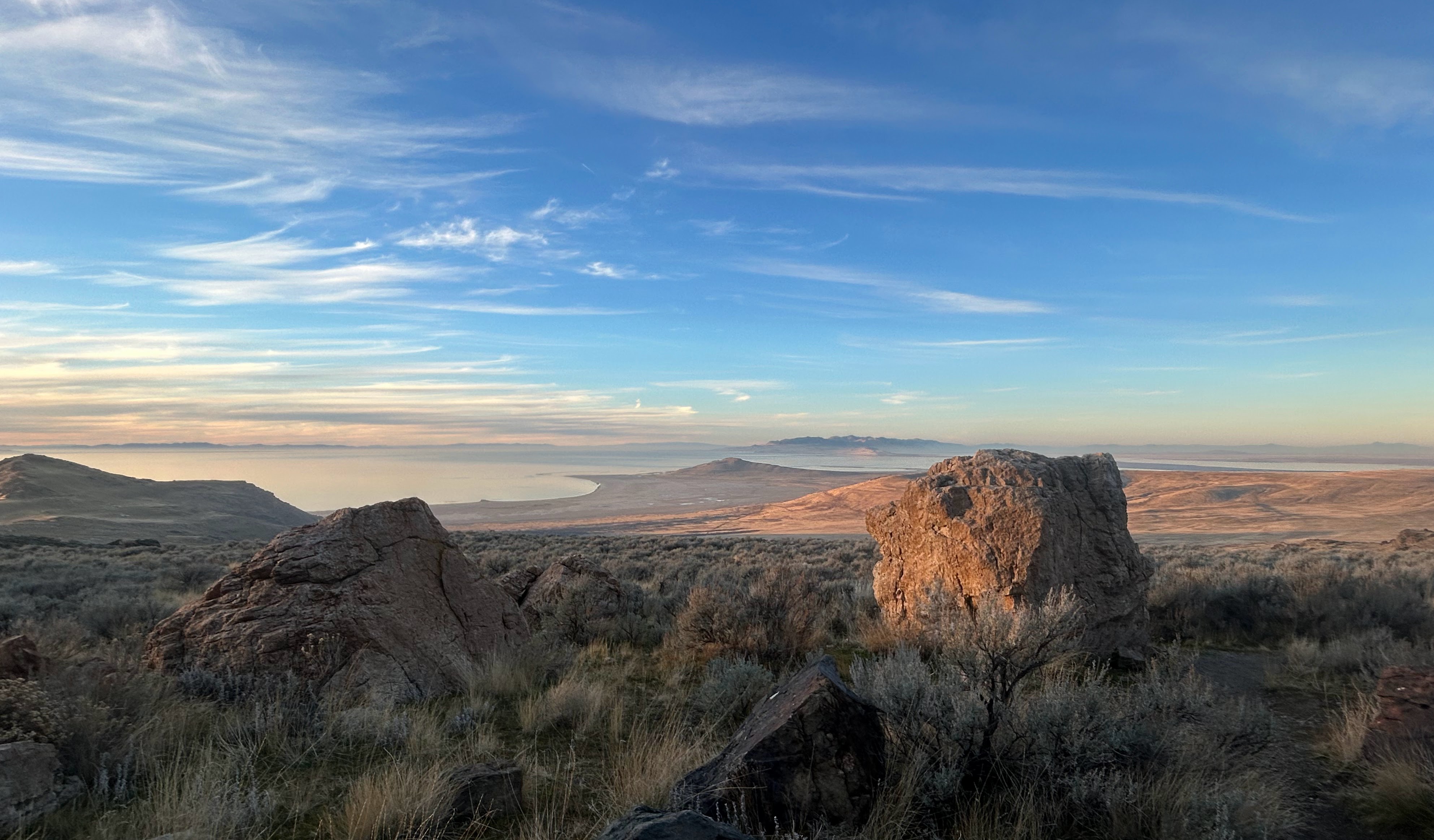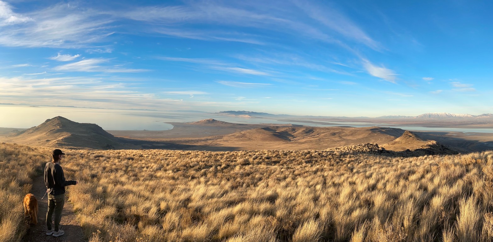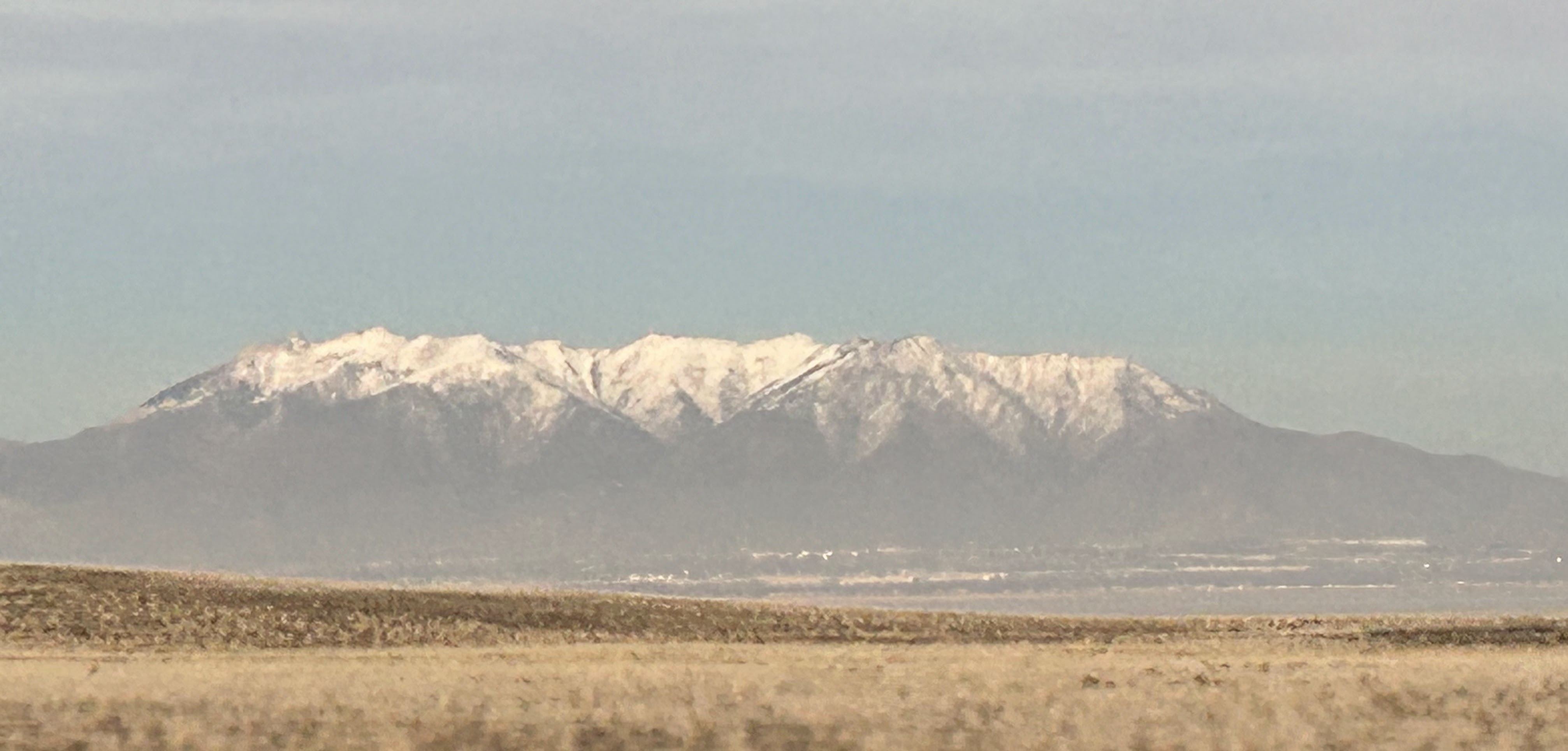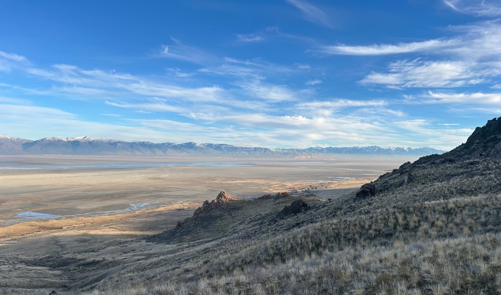 Snow can be seen at the top of the distant Wasatch Front
