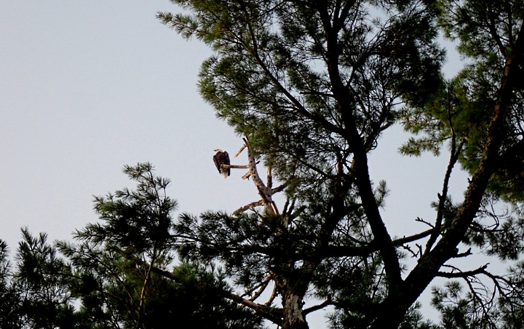 A bald eagle was perched watching the lake the entire time I was in the area.