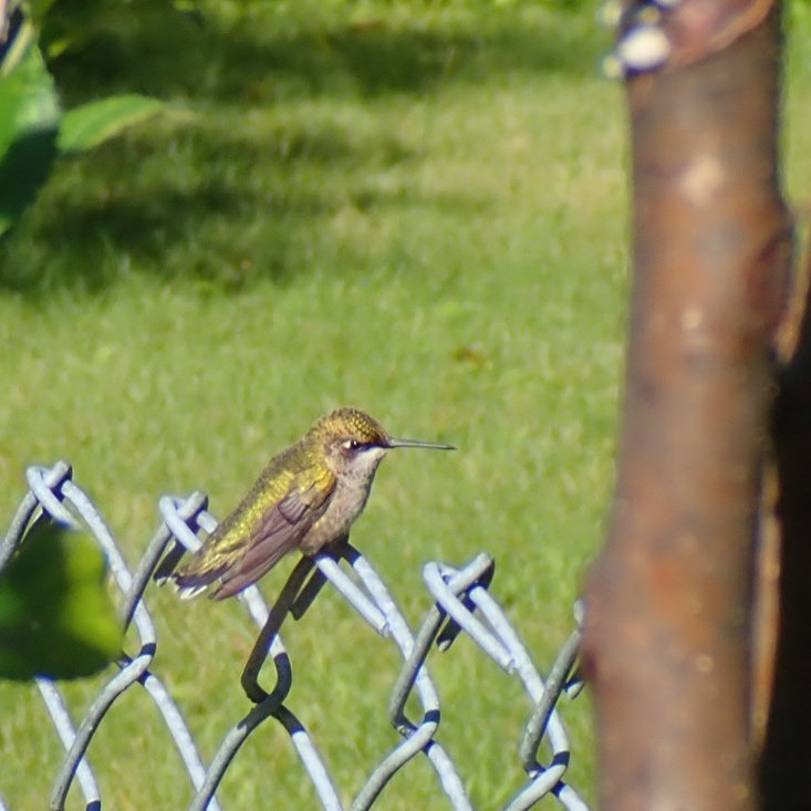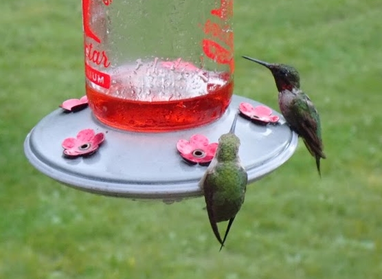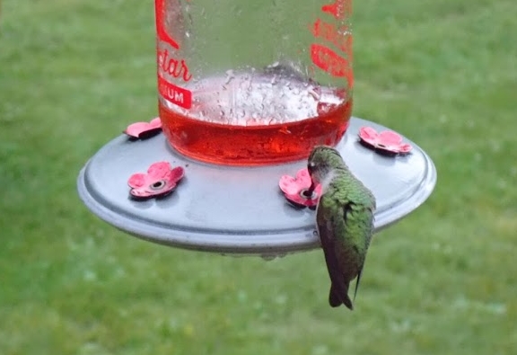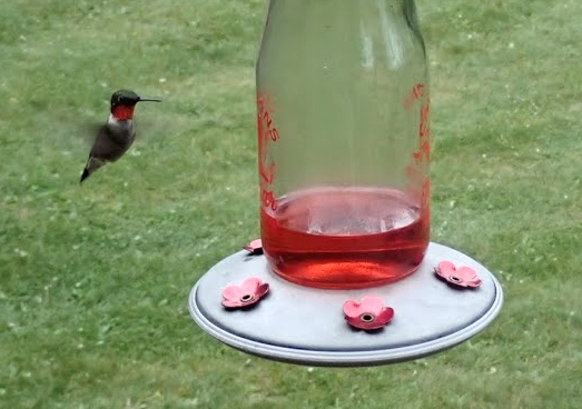 Updated to include the pictures above, that show a female Ruby-Throated Hummingbird visiting our garden today.