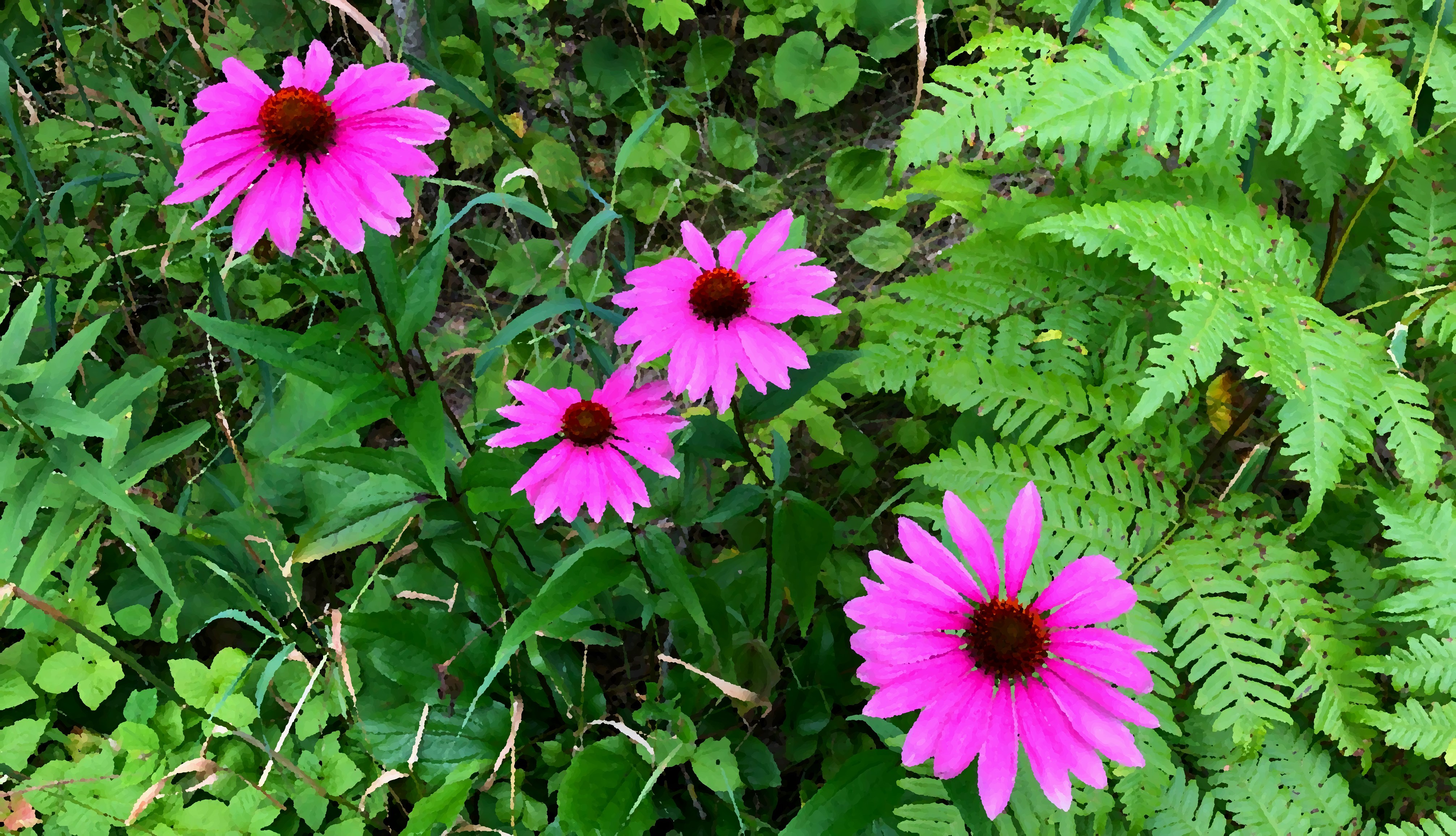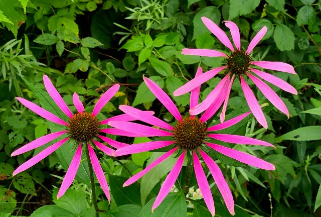 According to Minnesota Wildflowers, the Eastern Purple Coneflower is not native to Minnesota, although other coneflower species are. Despite this, I think the plants pictured below are the Eastern Purple Coneflower. I’ve seen them only one place. They are prevalent along the Paul Bunyan Trail running between highways 34 and 371, south of Walker, Minnesota. It seems suspicious that they are so prevalent there and seen no where else in the area. Reportedly they are increasingly common as a “garden escapee”, which seems a likely explanation for this occurrence.