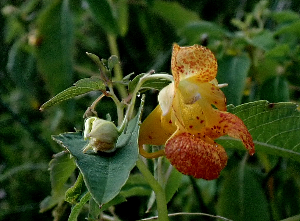 This is an attractive and vigorous native plant that prefers semi-shady wetlands. Its mature seed pods explosively expel seeds at a slight touch, which explains its alternate name, Spotted Touch-me-not.