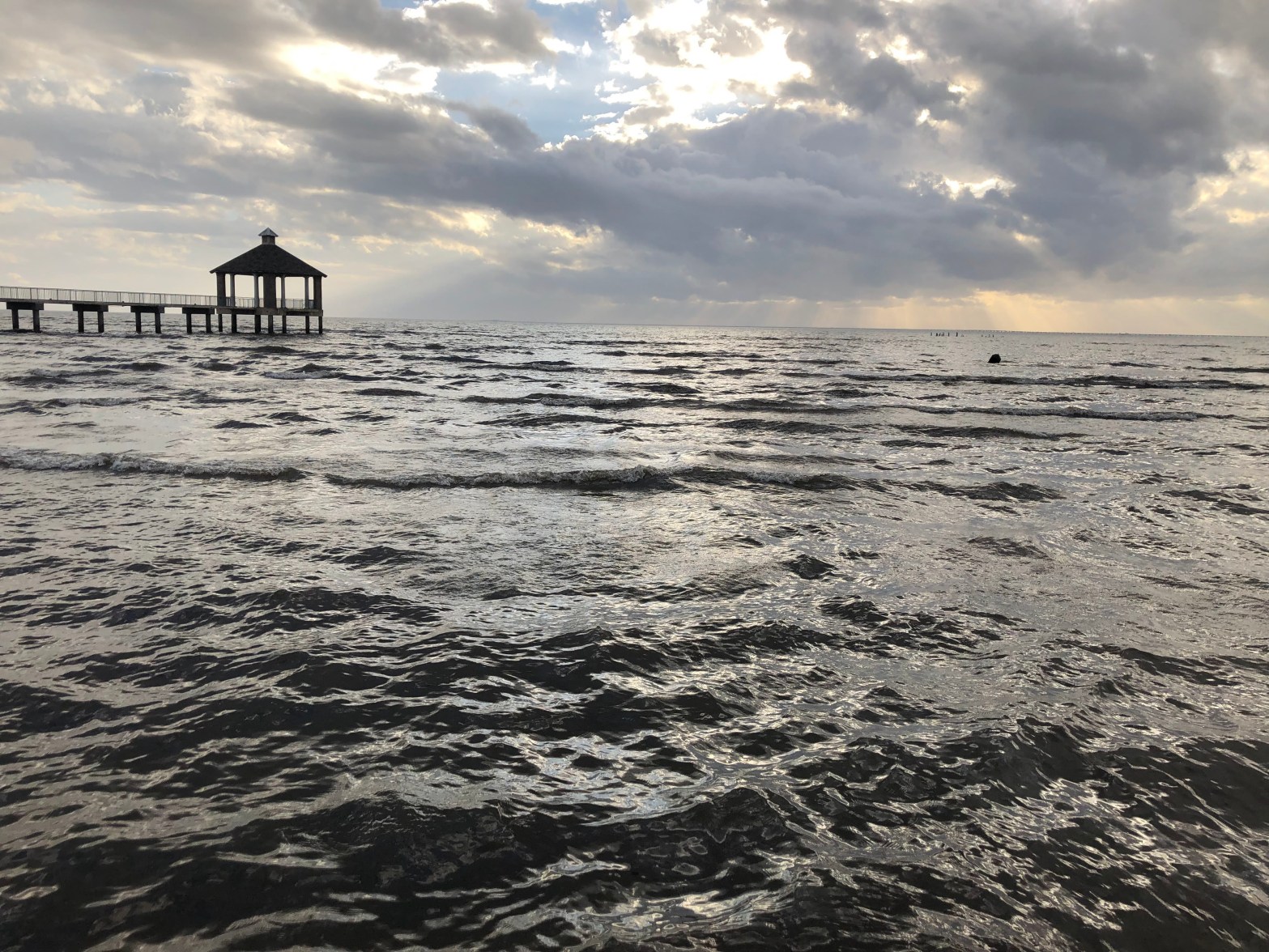A dramatic view of Lake Pontchartrain from its shore in Fontainebleau State Park, just east of Mandeville Louisiana. This was taken on an unseasonably warm day in late December.